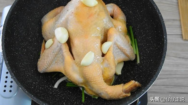 5.然后中火将锅中烧出热气后改小火加热半小时,此时的童子鸡表面颜色金黄就可以出锅装盘了