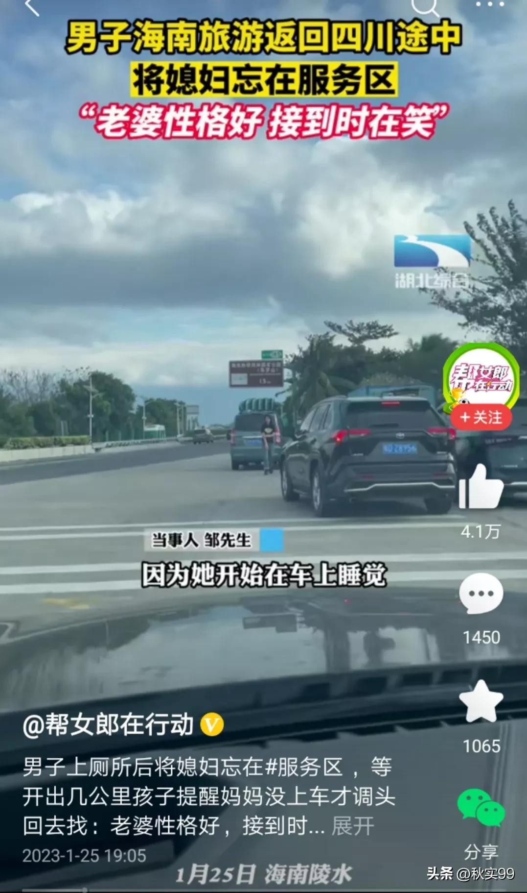 据帮女郎在行动视频报道,春节期间,男子一家4口自驾去海南旅游,返程途中服务区上厕所后,直接将车开走了。